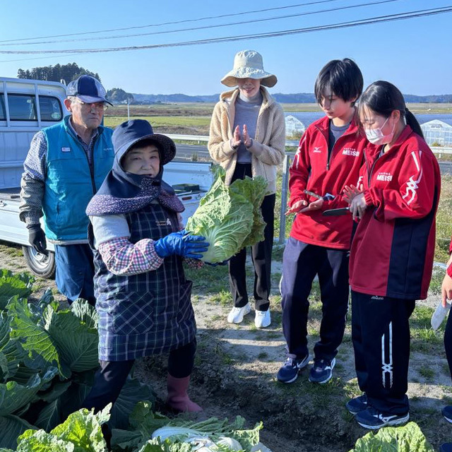 宮城県仙台市にある明成高等学校調理科をはじめ、地域「産官学民」の多様な主体が連携しながら推進する食環境デザインプロジェクト「みんなの白菜物語プロジェクト」は、2010年から開始されました。ふるさと「みやぎ」の百年白菜に関する食文化資源を活用した食の学びを実践し、その学びを通して地域の多様な交流を生み出し、広義の地域づくりに貢献しようとする取り組みです。2011年3 月に発生した東日本大震災以降は、宮城・東北・日本の復興を目指す取組として、さらに深化し続けています。ふるさと「みやぎ」の約百年の白菜の歴史を紐解きながら、ふるさとの「大切なものやこと」をこれからの「新しいふるさとづくり」につないでいく、そんな思いがこのプロジェクトには込められているのです。当社では2011年秋から塩竈市浦戸野々島でこのプロジェクトの一環で活動が開始された「白菜の採種文化の保存活動」に参画しています。また地元食産業企業としてこのプロジェクトを応援するために、たくさんの取組主体とともに宮城県産の「松島白菜(松島純二号)」を原料とした「松島白菜餃子」の商品化に取り組みました。皆様のふるさとへの「思い」も餃子に包み込みました。